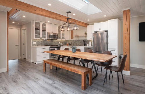 This high-end retreat is a private 2 Bedroom 2 bathroom with hot tub, gourmet kitchen, luxurious beds, exposed hardwood beams and patio access from each private bedroom.