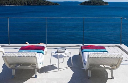 The Villa is located in Prižba on Island of Korčula, a typical Mediterranean island famous by it's great history and cultural heritage, as well as its tradition, gastronomy, mild Mediterranean climate, untouched nature and beautiful beaches. This luxurious three bedroom villa offers a rooftop furnished sun terrace fitted with sunbeds, rooftop outdoor swimming pool, hot tub, BBQ facilities as well as outdoor furniture / dining area and outdoor lounge area which makes it the ideal place for a nice and relaxing family or friends vacation. Baby cot is at guests disposal. Pets are allowed - free of charge. Free private parking is available on site.