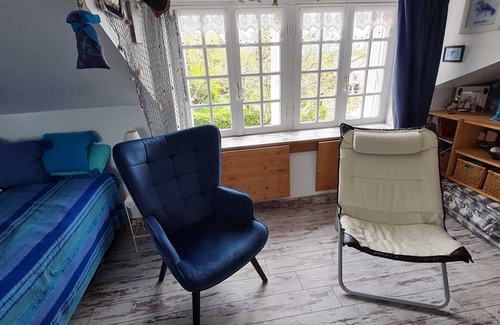 SMALL FISHING HOUSE in center of the main village: LE PALAIS, for 2 adults and a child, quiet, CLEAR VIEW ON SEA and GARDEN, ... The 1st beach, all the shops, the pier, the pier, the marina, the departure of the coastal paths, the cinema, the theater, the market (every morning), the fortifications and woods, ALL 2 MINUTES A FOOT....