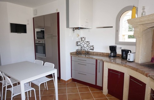 110 m², for 6 people, 1st floor fully air-conditioned with 2 bedrooms, 1 bathroom (bath + Italian shower + wc), ground floor with 1 bedroom, a dining room living room open to the kitchen, a wc and storeroom . Fully equipped kitchen.