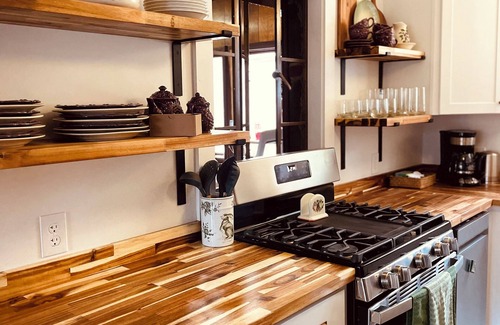 This artfully renovated home features a hot tub on a semi- private pond, an indoor fireplace and a canoe for venturing out on the pond!