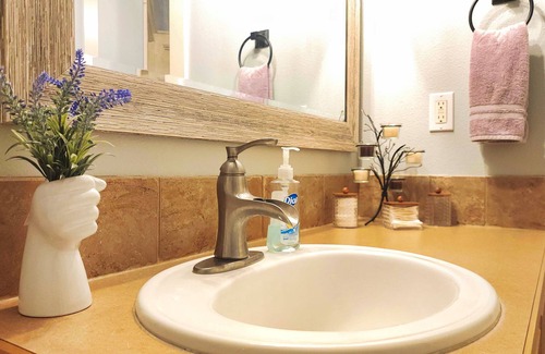 The shared bathroom is clean and cozy as well. It is the main bathroom on the main level but rarely used. Feel free to use one of the provided bath robes during your stay! Towels, shampoo, conditioner, body wash, hand soap, lotion, Q-tips, and cotton pads provided. If you forget any other toiletries, this may be purchased from host. Toiletry bags are $10 additional fee.