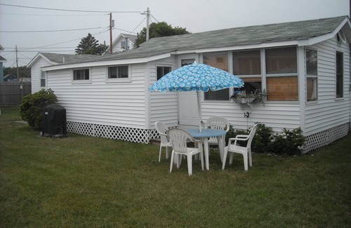 A seasonal vacation cottage located steps from the ocean waves at Long Sands Beach. The cottage is a tastefully furnished detached quaint 3+ room (& porch), sleeping up to 5 people. There is a full size bed in the master bedroom, a pullout trundle in living room &/or can be converted into a full size bed, and an extra over sized chair bed on the porch. The bath is 3/4 with a shower. There is a HD flat screen cable TV, a fully equipped eat-in kitchen, a screened in porch for breezes, and a gas grill and lawn furniture to enjoy! This is a housekeeping cottage and guests will provide their own towels or request them. Sheets are provided.This is a very family friendly beach area.There is parking for up to 2 vehicles, tags will be provided. Please note: The cottage has been recently renovated to include open natural tongue & groove wood ceilings with fans in the living room & bedroom as well as bead board paneling & driftwood color laminate flooring. There are 2 air conditioners and free WiFi.