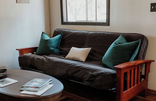 Inside all our cabins you will find a full size futon couch, full kitchen, kitchen nook, and dining table. Fresh towels, linens and blankets are also provided in every cabin for the convenience of our guests.