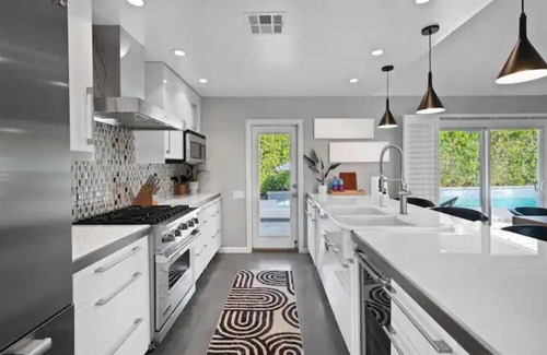 Located a mile from downtown, 𝑀𝒾𝓁𝑒𝓈 𝒜𝓌𝒶𝓎 is a professionally designed, luxurious property boasting stunning mountain views, a private pool/spa and a desert chic interior, making it the perfect place to soak up the California sun. The backyard is fabulous for relaxing or enjoying a meal al fresco. With 3 luxe bedrooms, a fully equipped kitchen, and a open living area, this is the perfect desert retreat for you and your guests.