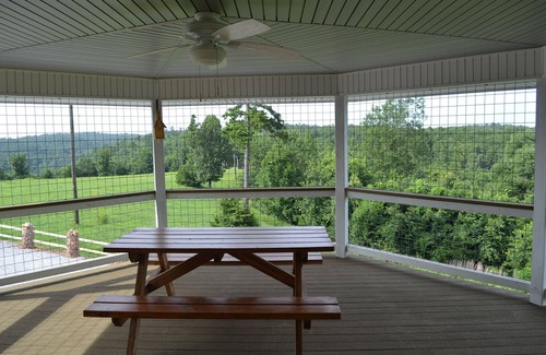 The Upper unit has a covered, outside area to enjoy without having to be out in the elements! You can sit on the front porch bench and enjoy the scenery. Walk around to the Gazebo area and enjoy a picnic or just sit back and enjoy the views. The back decking has a porch swing and a nice table and chairs to eat your dinner or enjoy your morning coffee!