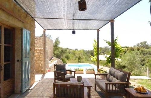 ENGLISCH: Between Sant Llorenç and Arta, in a very quiet and natural place well connected with more than 50 km of coast only 15-25 minutes away. This house and studio with pool is thought to satisfy your holidays with capacity for two adults and one chid. Built with thick wolls garantee a thermal comfort. Is equipped with a photovoltaic energy installation. This beautiful house with studio and pool has one bedroom (double bed + one sofa bed), bathroom, TV room, kitchen, storeroom, laundry and the studio. There is an stero (bluetooth-controlled) for the terrace and two bikes
