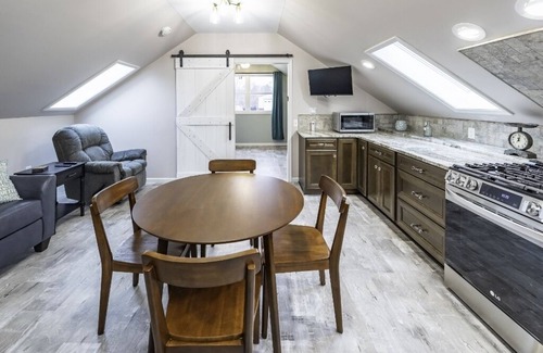 Ready to accommodate you for your next business trip! This secluded and elegant 1bed/1bath Guest Suite is a quick 10 to 15 minute drive to Ann Arbor & Ypsilanti, and less than a mile to the US23 entrance. With it's private entrance, this 2nd floor suite will impress you with it's high-end finishes and attention to detail. Stargaze from bed while looking up at the overhead skylight while you drift off to sleep! Enjoy your healthy home cooked meals in the gorgeous high-end kitchen with it's LG appliances; gas stove w/built-in airfryer, dishwasher, french door refrigerator, toaster, coffeemaker. High-speed wireless internet can be utilized while working from the small office nook. Relax after a long work day, catching up on your favorite shows on the Roku TV. The full size washer and dryer make for a more convenient extended stay. Some features of this suite that offer peace of mind, include: air conditioning, back-up generator, and security cameras on site. Stargazing and babbling brook included!