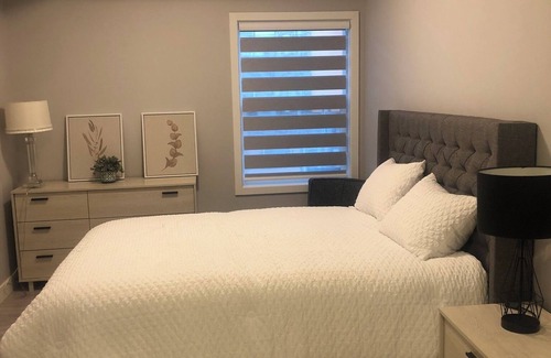 Experience comfort and style in this modern, centrally located apartment. Welcome to Brightwater — a brand new, fully furnished 2-bedroom, 2-bath unit just a 2-minute walk from the beach on Lakeshore Drive, right off Hwy #3 (Main Street). Situated on the second floor, this 850 sq ft unit offers everything you need for a relaxing stay in Osoyoos. The master bedroom features a queen bed, while the second bedroom includes a double bed. Enjoy complimentary Wi-Fi and hassle-free parking on street right next to complex. Perfectly located to explore all that Osoyoos has to offer.