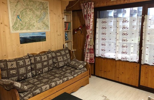 This Savoyard cocoon is ideally located between the city center (200 m) and the Grand Express gondola (700 m accessible by free shuttle), opposite the Sherpa supermarket. It can accommodate 4 people and is fully equipped for a peaceful stay in the mountains. Bed linen and towels are also provided!