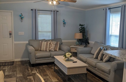 Rainbow Springs Bungalows with FREE KP Hole deeded access to the boat ramp. Walking distance to the beautiful Rainbow River Springs. The KP Hole does not allow personal floats so if you would like to tube you can rent tubes at the KP Hole. Fully furnished 2 bedroom, 2 bathroom with king size bed in master, queen size in guest room and a pull out couch. Home sleeps 6. Fully equipment kitchen, washer and dryer and linens provided. Common areas include charcoal grills, large grill with air fryer, large life size chess game, hammocks, fire pit, organic raised flowerbeds, golf carts welcome. If you are a golf lover the beautiful Juliet Falls Golf Course is only 10 minutes away. Please be aware that there are no tube rentals at the KP Hole from September 30th to April 1st.