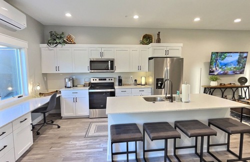 - The kitchen has all the amenities of home; you'll find high-end cookware, dishes, a drip coffee maker, Keurig single cup brewer, a slow cooker, a tea kettle, and a blender. We provide an initial supply of coffee, tea and snacks upon check-in.