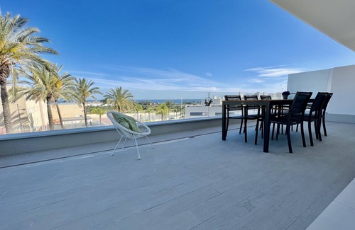 Brand new 3 bedroom apartment in the modern and perfectly situated Le Mirage community (Phase 3). This beautiful property has just been released onto the short term rental market, and is fully equipped and furnished, ready to welcome guests! The first floor apartment offers plenty of space in 3 bedrooms, 2 bathrooms, open plan living and kitchen, and spacious terrace with sea views. The urbanisation is fully gated, has a large communal swimming pool, and is just 5 minutes drive to the beach and 12 minutes drive to Puerto Banús.