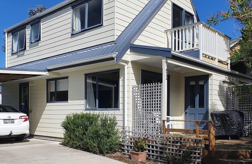 Our beach house is on Otahu Road. It is well equipped and comfortable, and it is especially suitable for a family of four or a couple sleeping upstairs and a couple sleeping downstairs, with privacy on each level.