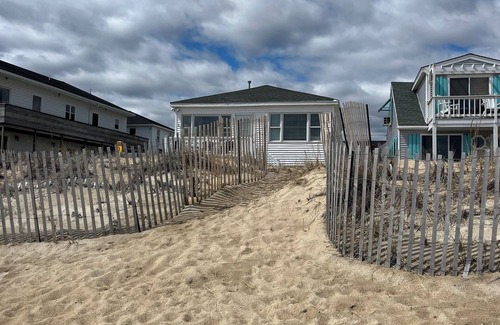 Directly on Salisbury beach , this newly renovated cottage offers three cozy bedrooms - two with queen beds and one with a twin beds. With amenities like WiFi, smart TV, ceiling fans, AC, guests can relax and unwind after a day on the beach. The bathroom features a refreshing shower for a quick rinse. We hope you enjoy what our place and Salisbury has to offer. Less than a 5 minute walk to downtown, close to multiple restaurants with great nightlife, coffee shops, ice cream & candy shop, arcades, vintage carousel rides, Free live bands on Oceanfront stage, Sunrises and Fireworks from your own private deck. Mobility mat leading to Cottage entry & beach. Ground level unit. 1 step entry. 1 parking spot provided additional on street parking available.