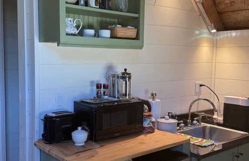 In addition to the main house, Shed Peaks offers a peaceful, detached bedroom just 50 feet from the home near the garden. This cozy hideaway has a queen bed, electricity, a small entry porch, and a deck. While it has no bathroom or running water, the breezes and privacy make it a favorite for guests who enjoy a quiet escape. (Shed Peaks is not Heated and only available during the warmer months. (May-October)