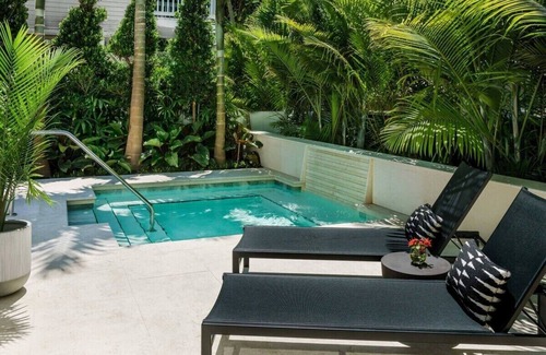 The Grand Maloney Hotel is a new boutique hotel located in the heart of downtown Key West. Our signature red brick, historical home on Caroline Street has been lovingly restored with a brand-new heated dipping pool on its private patio. With undeniable character, the two-story house stands out from the traditional cottages of Key West in the same way the Grand Maloney stands out from other boutique hotels in the area.