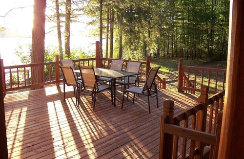 You'll find us located on the shores of 600 acre crystal clear Big Portage Lake in Land O' Lakes, Wisconsin. Redpebble at 4500 sq, ft is not only spacious, well-furnished and decorated but a comfortable blend of the original classic log cabin and all the modern features of an upscale vacation home. Bring your extended family, or lots of friends, because there is room for all! Redpebble accommodates up to 20.