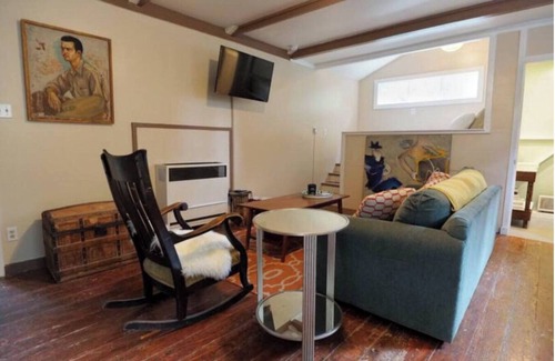 1 queen bed in cozy loft with full kitchen and bathroom. Outside patio that takes you to the garden that the owner plants seasonally.