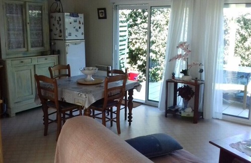 Chalet in private residence with its fenced garden not overlooked. It is equipped on the ground floor with a beautiful kitchen open to a large living room overlooking the garden, a bathroom and a toilet. On the mezzanine is a sleeping area (1 double bed and 2 single beds). Car park. Garden furniture with barbecue and plancha. 5 mins by car from the Chambrette beach. Holiday vouchers accepted.