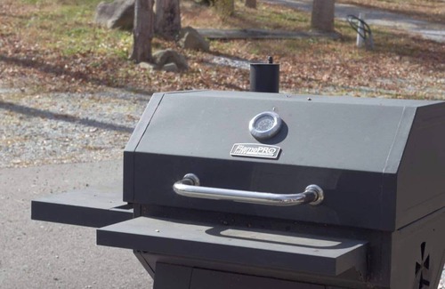 This cozy cabin boasts stunning views and a private patio or balcony where you can enjoy the beauty of nature. The outdoor area features comfortable furniture, a fire pit, and a BBQ grill for your use. Enjoy the serene surroundings by cooking a meal on the charcoal grill and enjoying it in the outdoor dining area. The perfect spot to relax and unwind, this cabin offers privacy and relaxation.