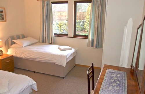 The open plan kitchen/dining room/lounge is very light with large windows and a patio door leading to the back garden where guests can relax on the garden furniture. There is a wood burning stove, Sky TV, DVD, CD player, radio, Wi-Fi, books, games, and puzzles. There is seating for 7 around the dining table. The new modern kitchen (all electric) is very well equipped with dishwasher, microwave, fridge/freezer, toaster, kettle, kitchen utensils, pots and pans. The Master Bedroom is furnished with a king size bed with en-suite bathroom (shower over bath and WC) bedside cabinets with lights and a mirror. The Twin Bedroom has two single beds, mirror and 2 bedside cabinets with lights. The Second Twin Bedroom is equipped with two single beds, table dresser, wardrobe and bedside cabinet with lights. The single bedroom has a single bed, bedside cabinets with lights. Family Bathroom: Bath, WC and separate shower. Other bathrooms: Bath with overhead shower, wash hand basin and toilet. Hairdryer provided. There are curtains and blackout blinds in all the bedrooms. The house has central heating throughout.