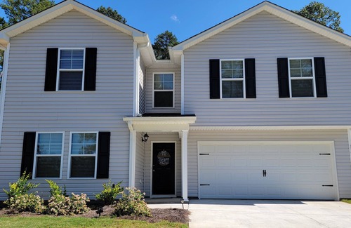 Relax with the whole family at this peaceful place to stay. This is a house across the street from the lake on Badin Lake NC. Lake access with boat ramp in neighborhood less than a mile from home. It is a 5 bedroom with 3 full bathrooms. Huge master bedroom with vaulted ceilings and large walk-in closet. One bedroom and one full bathroom downstairs. Four bedrooms, two full bathrooms and office with futon bed are upstairs. Open concept living room, dining room and kitchen area. Full equip kitchen with new stainless-steel appliances including a flat top range, microwave and dishwasher. It has an outdoor patio with firepit and extended gravel driveway on the right side of the house.