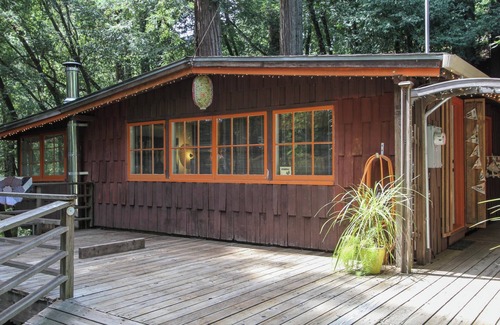 Just over an hour from San Francisco is the perfect location for a relaxing getaway. Meandering into the small village of Rio Nido under the tall redwoods is a delight as you enter this Cabin in the Trees. Features two bedrooms one bath and large living room for entertaining. Nestled right in the Redwoods, the Tree House is gently perched in the trees overlooking the canyon below. As you gaze out the windows it feels as if your perched right in the canopy of the forest. The Tree House has two bedrooms with comfy queen beds and luxurious linens. Originally built in the 1920's this cabin has been updated and decorated with eclectic comfortable furnishings. Still maintaining it's rustic cabin charm the decks are amazing and a beautiful place to eat, drink and enjoy the tranquility of the Redwoods. There is a full kitchen with most everything you'll need to prepare basic meals and a dishwasher for cleanup. The Tree House is self catering so please bring your own food and spices. There is a Safeway grocery store in Guerneville just two miles down the road. We have a gas fireplace in the spacious open living room and in the fall and winter we do our best to have it on, warm and cozy for your arrival.