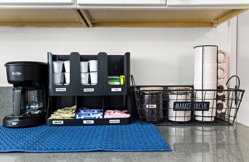 Enjoy the convenience of a fully equipped kitchen, perfect for preparing home-cooked meals. You'll find essential appliances like a fridge/freezer, stove, and microwave, along with quality cookware, dinnerware, and utensils for a hassle-free stay. Gather in the cozy dining area to share meals and make memories.