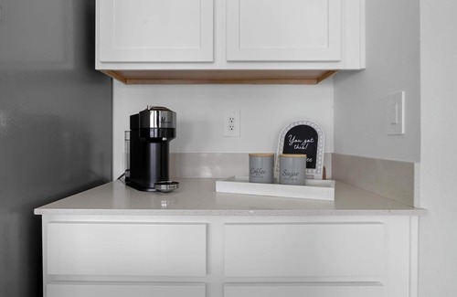 The dining table seats 8, creating the perfect setting for meals and conversation. Guests can also enjoy serene backyard views directly from the dining area. Our modern kitchen includes new appliances, blender, sandwich maker, hot water kettle, coffee station & more. Step outside to the brand-new grill and outdoor dining setup for BBQ nights under the Florida sky.