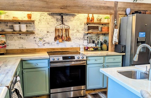 5 min from Covington, 40 minutes from New Orleans, 15 minutes from tubing excursions, zoo's & 30 from swamp tours and much more. As you pass over our bridge and meander down the winding drive you let your cares go. The property is healing grounds for most. The vivid forest surrounds you and your relaxation begins as you look into gardens of gardenias, azaleas, camellias, large magnolia trees and fruit trees. Walk two minutes to our private beach. Grilling is a favorite activity while your nestled in the trees watching the sunset. Coffee time is magnificent on the front porch while listening to the birds and watching the squirrels scurry thru the trees. Whether you're here to hike, read a book or family time you will enjoy all the amenities. The kitchen has a drawer full of many favorite herbs. The 2 burner stove with prep sink and range make it easy for 2 to prepare meals. Spacious bathrooms and comfy beds make for a nice stay and restful sleep. If you would like to host a small event please inquire by message. You are sure to enjoy.