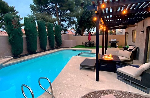 Remodeled Home w/Pool & Hot Tub close to strip! is located in Green Valley. Remodeled Home w/Pool & Hot Tub close to strip! provides accommodation, featuring Pool, Security/Safety, Bedding/Linens, among other amenities. This House features Pool, Security/Safety, Bedding/Linens, to make your stay a comfortable one.