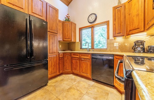 This updated, 2-bedroom, 3 bathroom, townhome offers a bright, warm and relaxing space, making it the perfect place to call “home” during your stay. It is a spacious 1230 sq. ft. open floor plan with vaulted ceilings - there is a good-sized living room, dining area and updated kitchen. This property gets beautiful morning and afternoon sunlight through the large windows in the living room and private porch with seating area, making for a serene scenic environment. The living room is equipped with large comfortable couches, forced air heating, and a wood burning fireplace, to keep warm during cold winter months. There is a full bathroom upstairs in the shared living area with walk-in shower. Enjoy cooking a delicious meal in the fully stocked kitchen, with solid stone granite countertops.