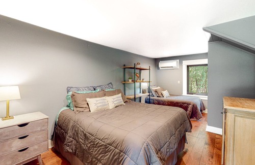 This two-story cabin was remodeled from an old mill on HGTV's Fixer To Fabulous, so you will come across nothing but convenience and comfort during your stay! Prepare exquisite homemade meals in the well-appointed and open full kitchen, complete with modern stainless steel appliances. The living area offers a great spot to unwind and create everlasting memories with your loved ones. The extensive wrap-around deck boasts comfy seating overlooking the water and a gas grill for summertime cookouts.