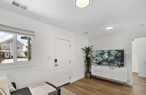 Located close to I-70 and 10 minutes from Downtown Golden, our tastefully renovated 2/1 is located in a great location for those commuting to the Mountains or Denver. The unit has great natural lighting, chic furnishings and great basic amenities such as a washer and dryer in unit, dishwasher, and small counter seating for eating or working remotely.