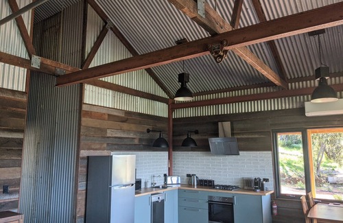 The barn has a rustic charm expressed by repurposing nearly all its original materials. Internally it is lined with its old Jarrah weatherboards and corrugated iron, and features massive exposed timber trusses and its original gantry and dolly.