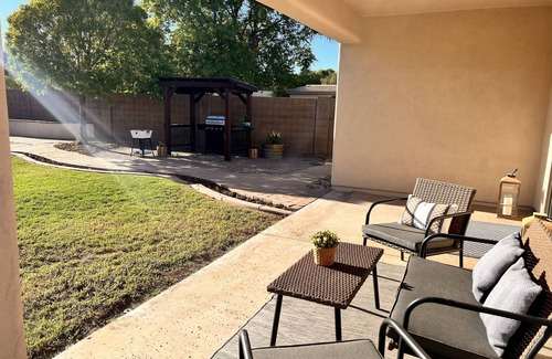The living room has plenty of seating for a family of 8, a 65" Smart TV to log into Hulu, Amazon, Netflix etc.. and Youtube TV. All bedrooms have smart TVs greater than 50" to enjoy watching tv when winding down. The backyard includes all the amenities for the Big Game as there is plenty of seating on the patio, grilling space, and a fire pit for the cooler days