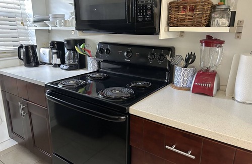 Very nice Boutique studio, close to the beach and lot of services, newly renovated Mid-Century Style, 1 bathroom, complete kitchen with all the pots and pan and basic groceries items, toaster, coffee maker, wifi, cable TV, A/C, hair dryer, iron and ironning board, outside BBQ, nice outside private garden with chairs and artificial grass, beach chairs, close from Oakland Blvd, very clean building with just 4 apartments, 1 private parking, walking distance from restaurants, grocery store, pharmacy, bars. Gated complex. Upscale, safe and quiet neighborhood, not too far from the airport (11 miles). This is a non-smoking unit. Nice and secure building with a gated terrace. Apt on the ground level