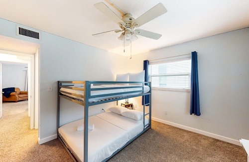 Upon your return, you can unwind in central air conditioning, set up a board game with your loved ones, and stream a favorite movie on the smart TV in the background. Each of the uncluttered bedrooms features a desk workspace, so you can log onto the high-speed WiFi and catch up on email.