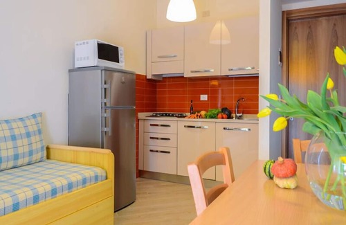 Useful & General InfoCheck infrom 4.00pm to 7.00pm, notify the Reception in case of delay.Check outby 10:00 am.Swimming poolopen approximately from Easter to the end of the season (weather conditions permitting), with fresh water, measuring 15 mx 7 m, with a section dedicated to children.The maximum depth of the pool is 140 cm.Affiliated beachwith special rates, on request, depending on availability upon arrival.Ironin the laundry room, available free of charge to customers.Kitchen linen is not available.Children'sTV channels.Outdoor play area.Indoorplay area.Babysitting serviceon requestfor a fee subject to availability.Bicycle rentalsubject to availability.Table tennis.The price includesConsumptionof electricity, water, gas.Bed and bathroom linenchanged weekly (kitchen linen not available).Wi-Fi.One parking spaceper apartment.Free shuttleto the center and the beach at scheduled times.Smallfree wellness corner according to availability with:Fitness roomTropical showerWhirlpool.The fee does not includeDepositper apartment.Air conditioningaccording to consumptionHeatingaccording to consumptionFinal cleaningby the customer or to be paid on site.The cleaning of the kitchenette must always be carried out by the customer.Second parkingprice per night.Baby Kit(cot, high chair and changing table) on request with payment on sitePetsallowed, one per apartment, on request with payment on site, price per night.Laundry token€5.00 each.NoteTourist tax to be paid on site, if applicable.Due to the COVID-19 medical emergency, in response to new possible additional legislative measures, services may be unavailable or subject to restrictions.Please note that young groups and parties are not allowed.