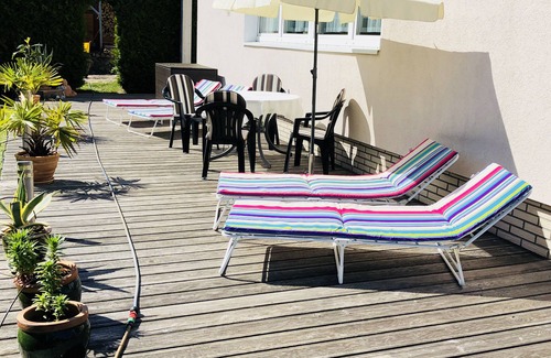 If the sun doesn't shine, we have a wide range of games, books and DVDs for all ages for entertainment. You can also enjoy your own music as our new, modern system has Bluetooth and USB connection. A flat screen TV with satellite TV and a WLAN network around the clock complete your entertainment options. But you'd better enjoy the long summer evenings on our terrace with evening lighting under a wonderfully close starry sky.
