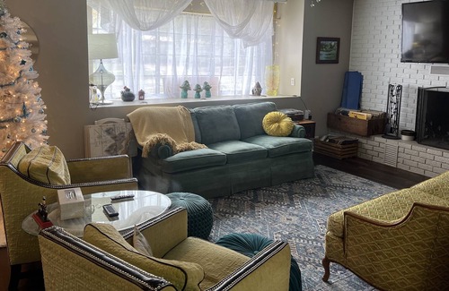 Sink into the past with this cozy three bedroom house with den. There are two queen beds, a twin, and two queen sofa beds for extra guests (maximum 9). Enjoy a covered outdoor porch with seating for a dozen. 2.5 baths. Outdoor plugs for two or more boats on eaves of house. Family Friendly: travel crib, high chair, wooden trains, and children books are available. Fairy home in tree. Anglers welcome!