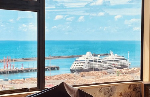 Retro house with endless views. Two floors, with two bedrooms and a bathroom on each, connected by a spiral staircase. Vistas over the port and up the coast from both living areas, and two of the bedrooms. A short drive to the city centre and local beaches.