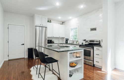 Our kitchen is newly renovated and well-stocked with everything you need to prepare a delicious meal away from home. Spices, oil, and vinegar, are provided, as well as coffee, tea, and Keurig pods. There are plenty of pots, pans, baking sheets, bowls, as well as a toaster oven, blender, rice cooker, many other small appliances. For your perfect brew, there is a drip coffee maker, Keurig, French press, coffee grinder and Espresso machine.