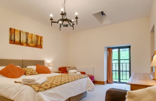 Spacious, serene and spectacular – this semi-detached converted barn really does have the wow factor. Surrounded by peaceful countryside and within walking distance of a cosy village pub, this five star holiday cottage is ideal for a country getaway. With an impressive games room and wonderful outside play area with brand-new play equipment, children will love connecting with nature and history in this delightful Welsh property.