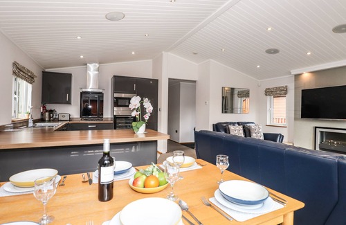 Detached modern lodge at White Cross Bay Windermere, sleeps six in three bedrooms. Hot tub. .Onsite facilities.
