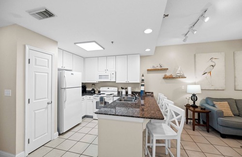 From our balcony, you will enjoy a breathtaking, unobstructed view of the beach and Gulf. Inside you will find approximately 1,000 square feet of beautifully appointed space to enjoy. Our unit offers floor to ceiling windows allowing you and your family to take in the view whether you are relaxing in the living room, resting in the master bedroom, or even preparing lunch in the kitchen.