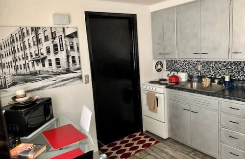 Private in unit laundry, garage access, full mini kitchen with stove, microwave, fridge and kitchen table and chairs.