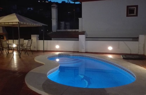 It has beautiful views of the mountains and the town. It has three floors with solarium, terrace, pool, private, barbecue and private garage.