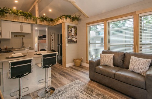 Enjoy the sounds of the pigeon river when you stay at River Farm Escape This tiny home is named for the famous waterfall- The Looking Glass. A luxury cottage home with the amenities of a world class hotel. Have “local coffee" on your private porch. beautiful furnishings, queen bed master, bunk bed on main , SmartTV, Wifi, outdoor firepit. Fishing and swimming!